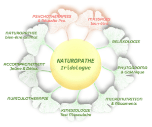 - L’apprentissage systématique de toutes les techniques naturopathiques ; une formation complète en anatomie/physiologie et une compétence d’excellence en iridologie.